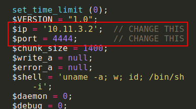 - 리버스 셸을 현재 디렉토리(cp /usr/share/webshells/php/php-reverse-shell.php )에 복사한 다음 원하는 텍스트 편집기로 연다.