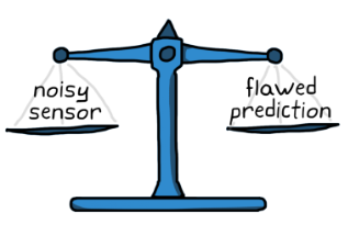 kalman filter는 센서의 노이즈 측정과 process model 의 잘못된 예측을 결합해 시스템의 상태를 추정한다.