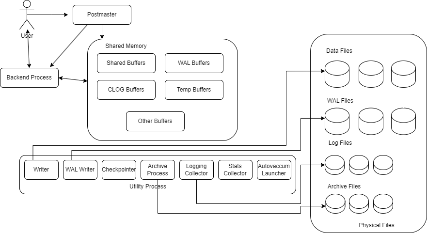 - 이 프로세스는 postmaster 프로세스에 의해 생성되며, 각 클라이언트와 1:1 관계를 가진다. 즉, 클라이언트가 연결을 요청할 때마다 개별 postgres 프로세스가 시작된다.