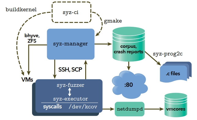 syzkaller는 다음과 같은 컴포넌트들로 구성되어있다.