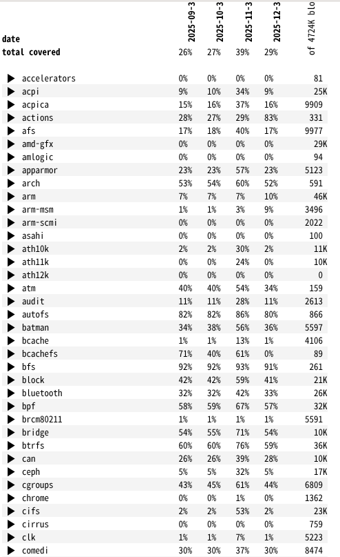 블록 수가 많으면서 커버리지 비율이 적은 subsystem을 테스트하여 아직 탐색되지 않은 버그를 찾아보기로 했다.