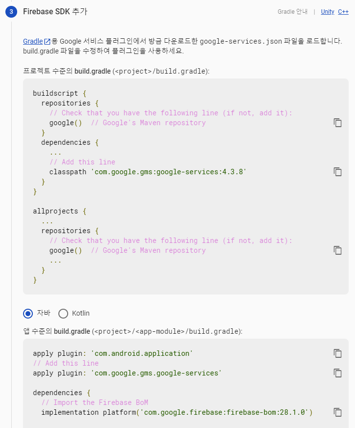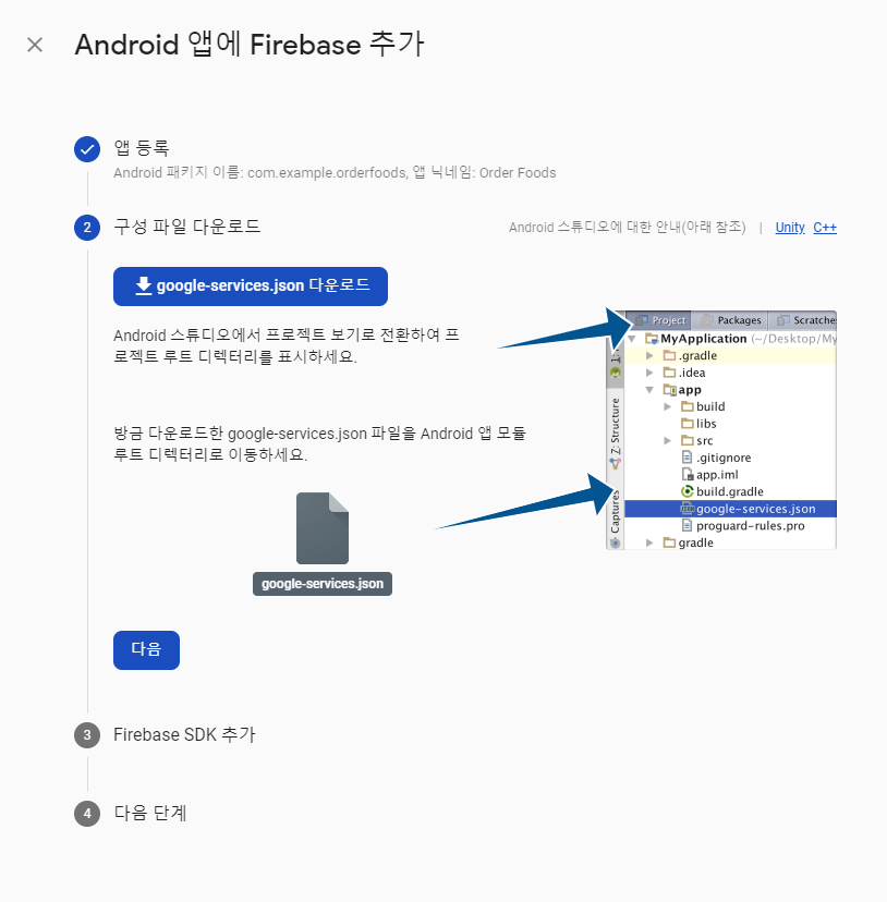 google-service.json파일은 증명서 같은 개념으로 이게 있어야 firebase에 접근할 수 있다고 한다. 여기에 여러 API 키가 있다.